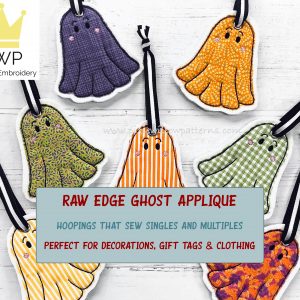 Raw Edge Applique Ghost. ITH Machine Embroidery pattern for 4×4, 5×7, 6×10, 8×11 and 9×12 hoops