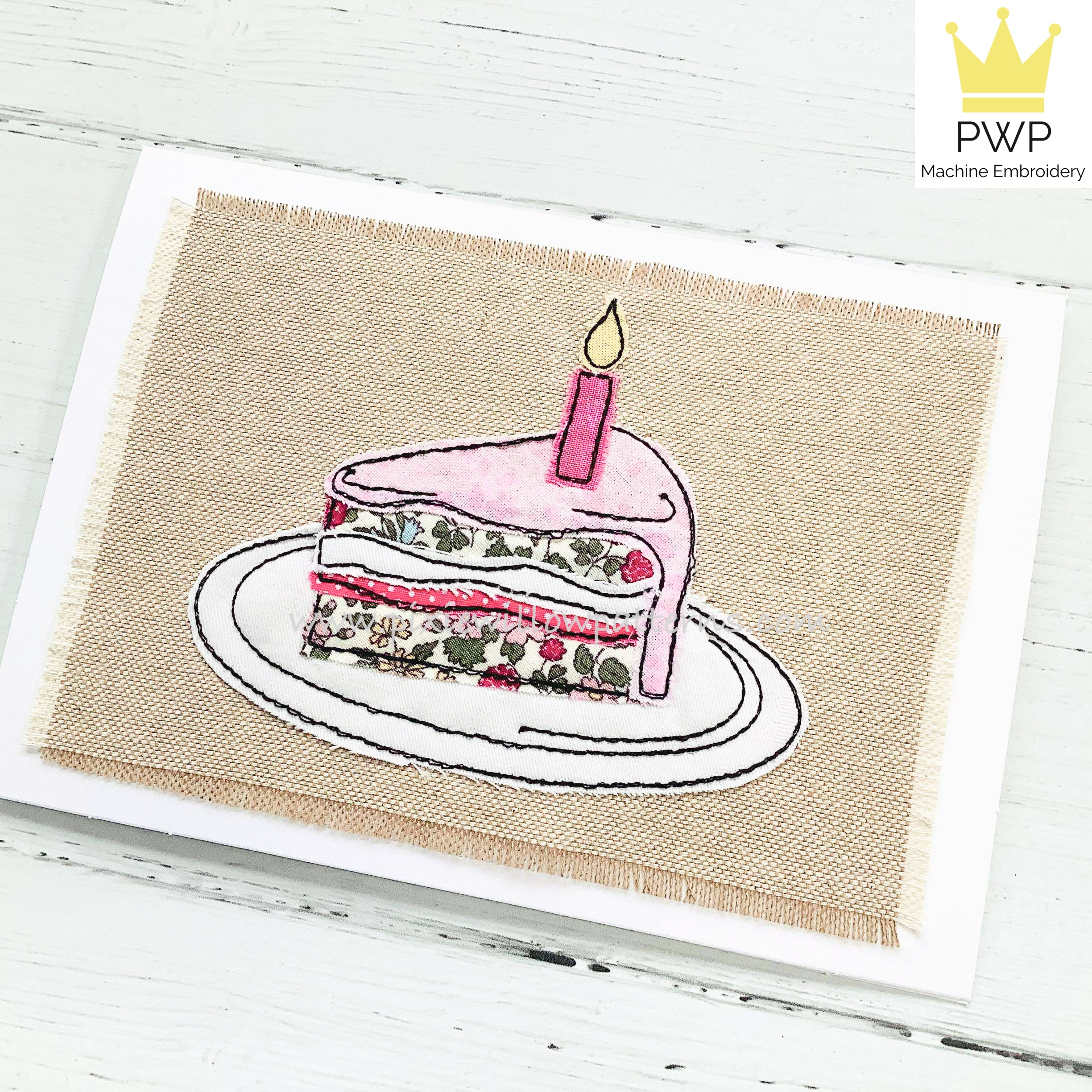 Cake Raw Edge Applique Design. Machine embroidery pattern of a Slice of birthday cake, for 5×7 hoops.