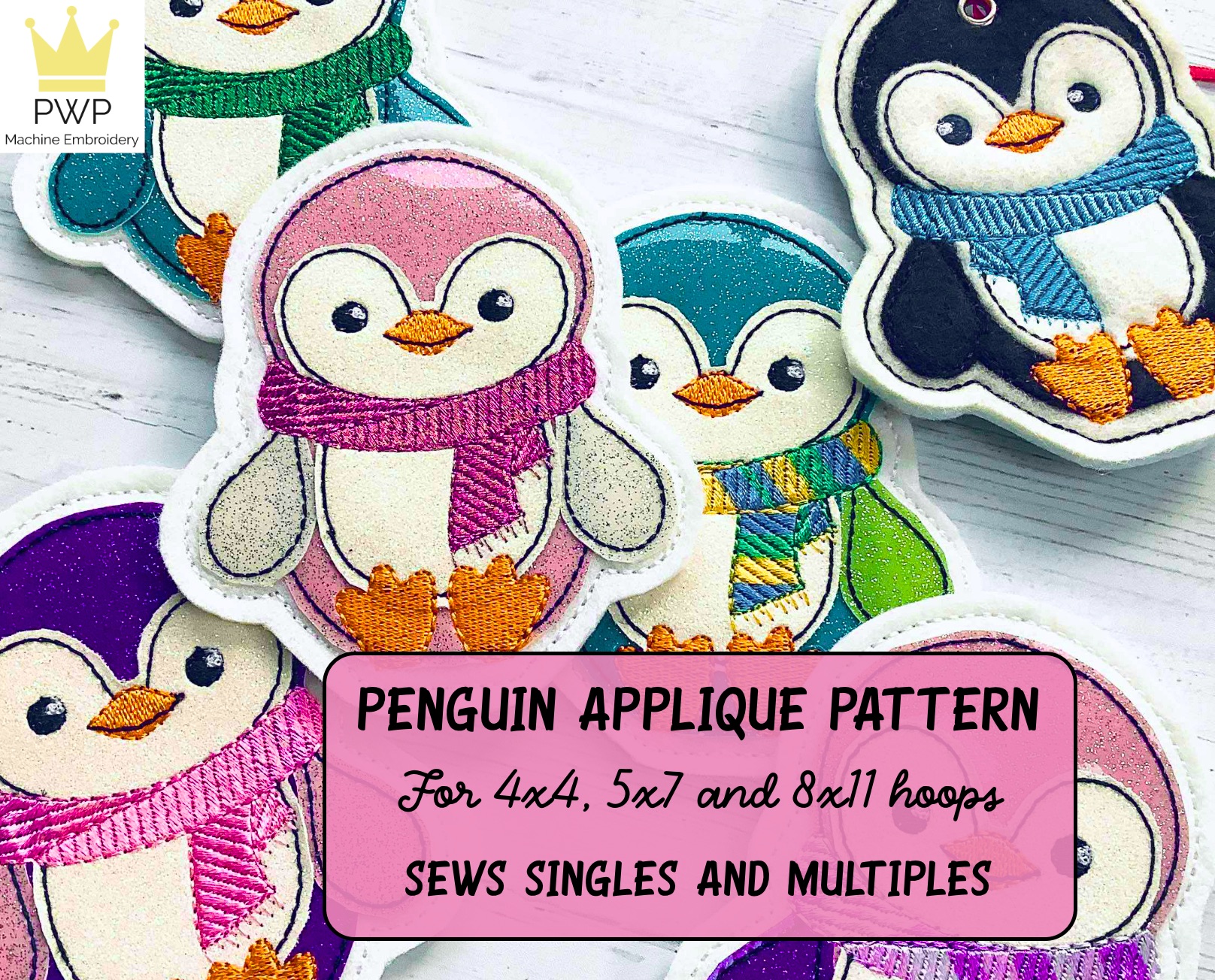 Machine embroidery design Penguin decoration. In the hoop penguin applique Christmas decoration
