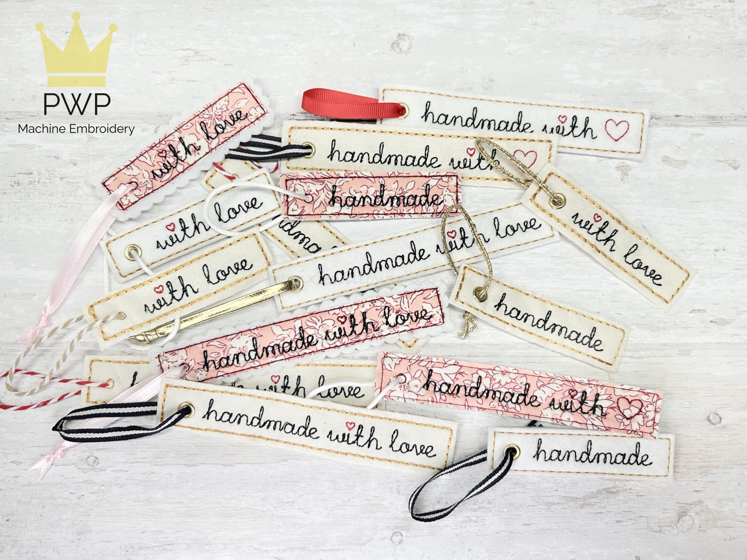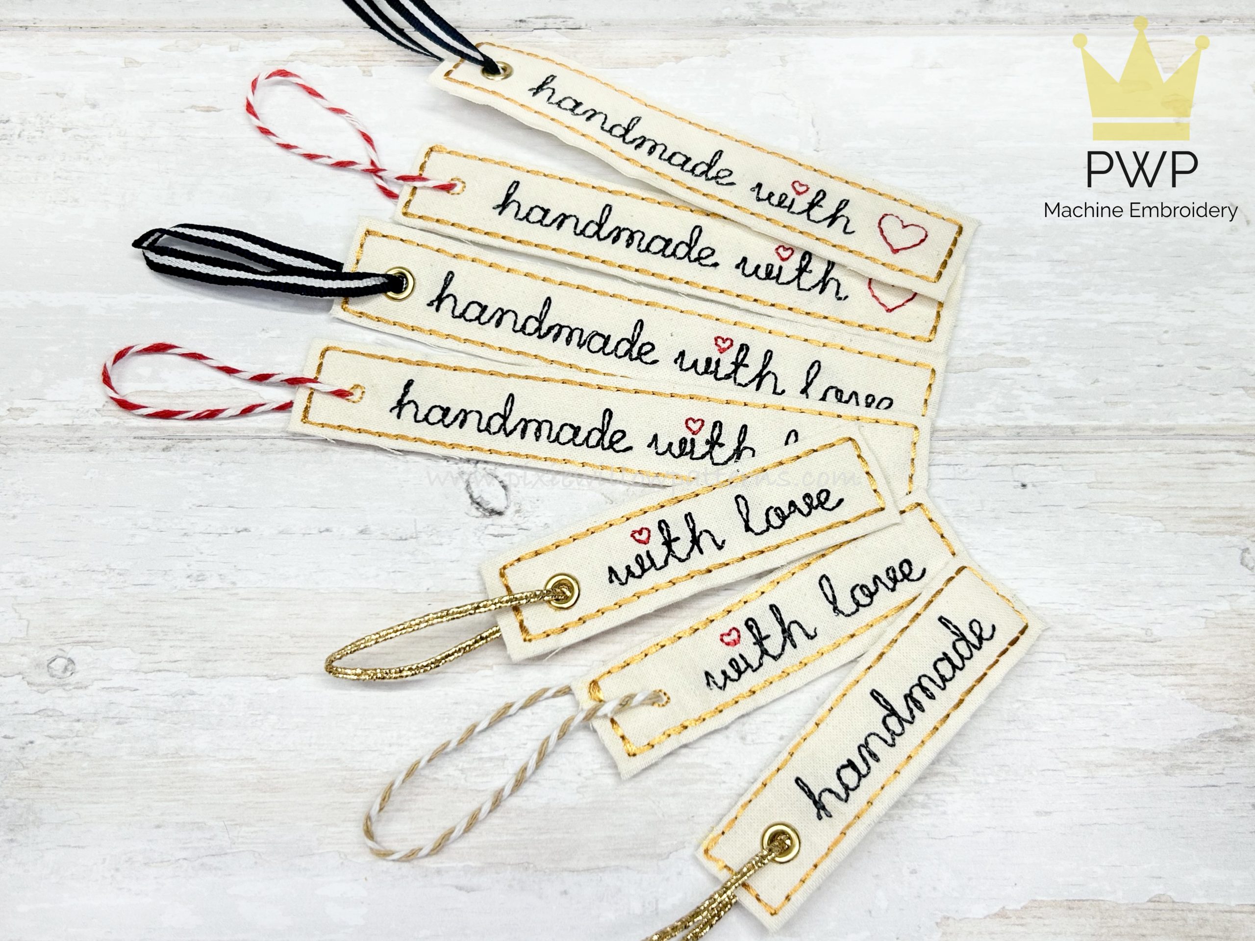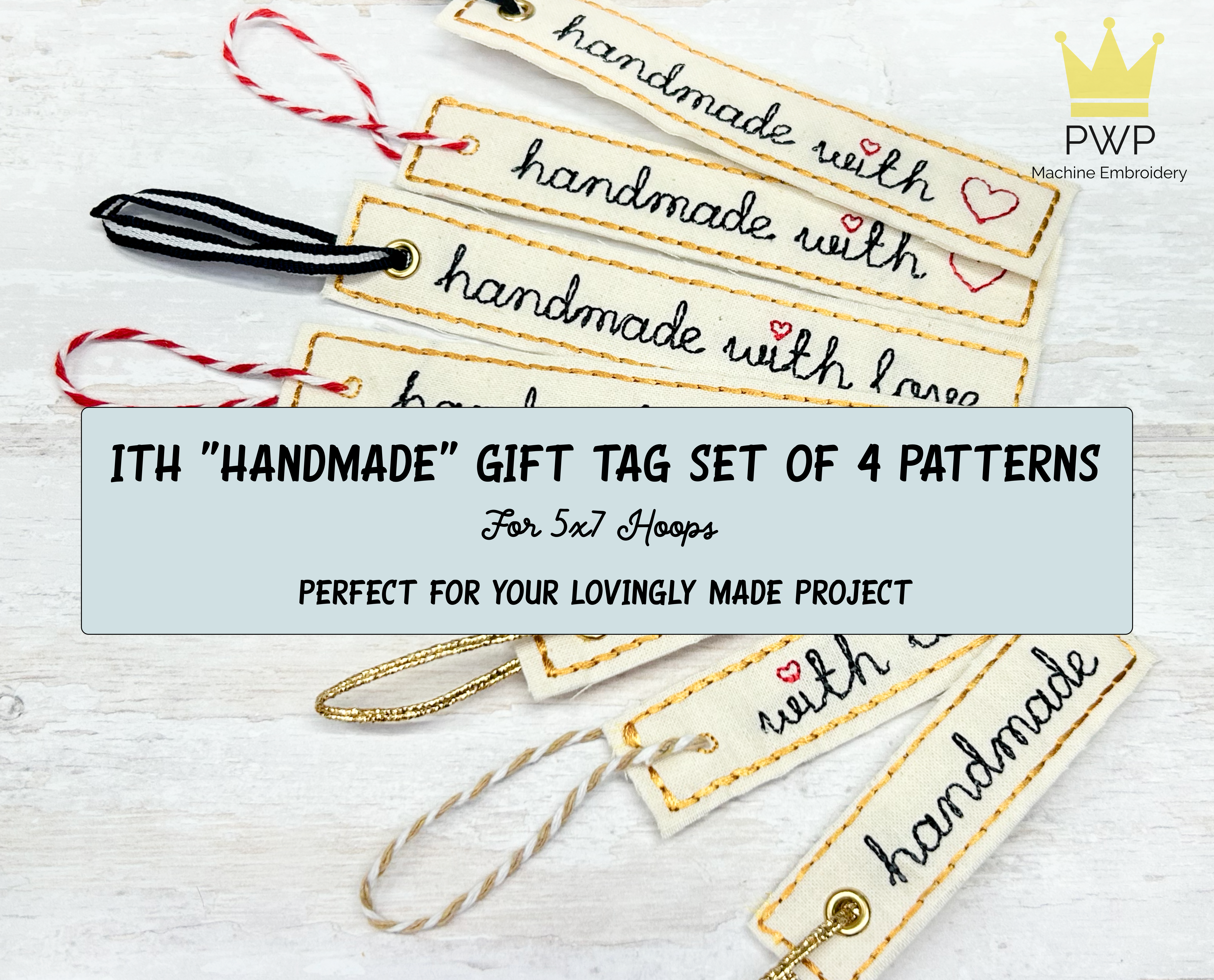 ITH “handmade” gift tag. Set of 4 designs for 5×7 Hoops. Machine Embroidery Designs
