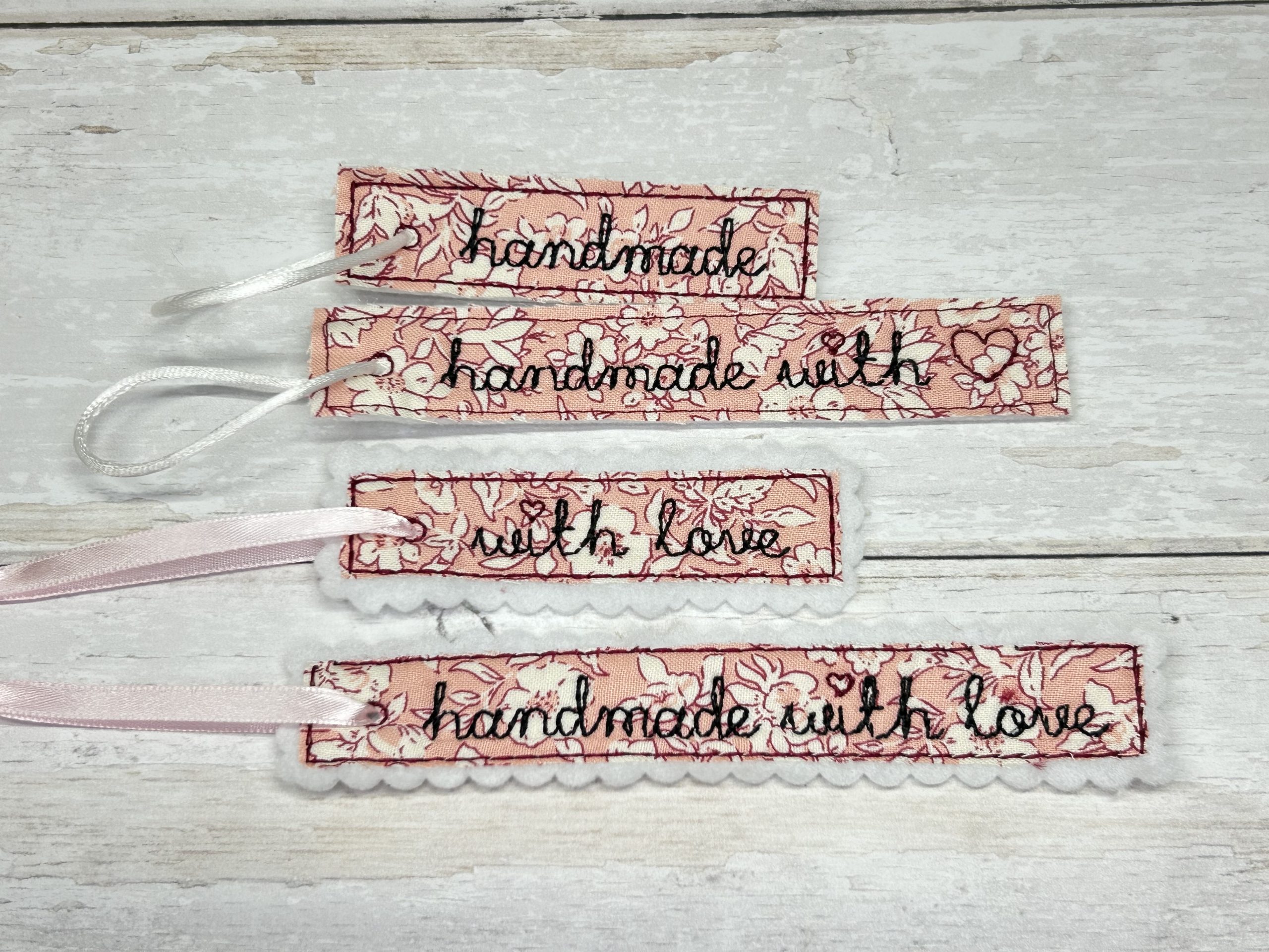 These simple, but classy, tags are the perfect accompaniment for your hand made items. There are 4 patterns that read;