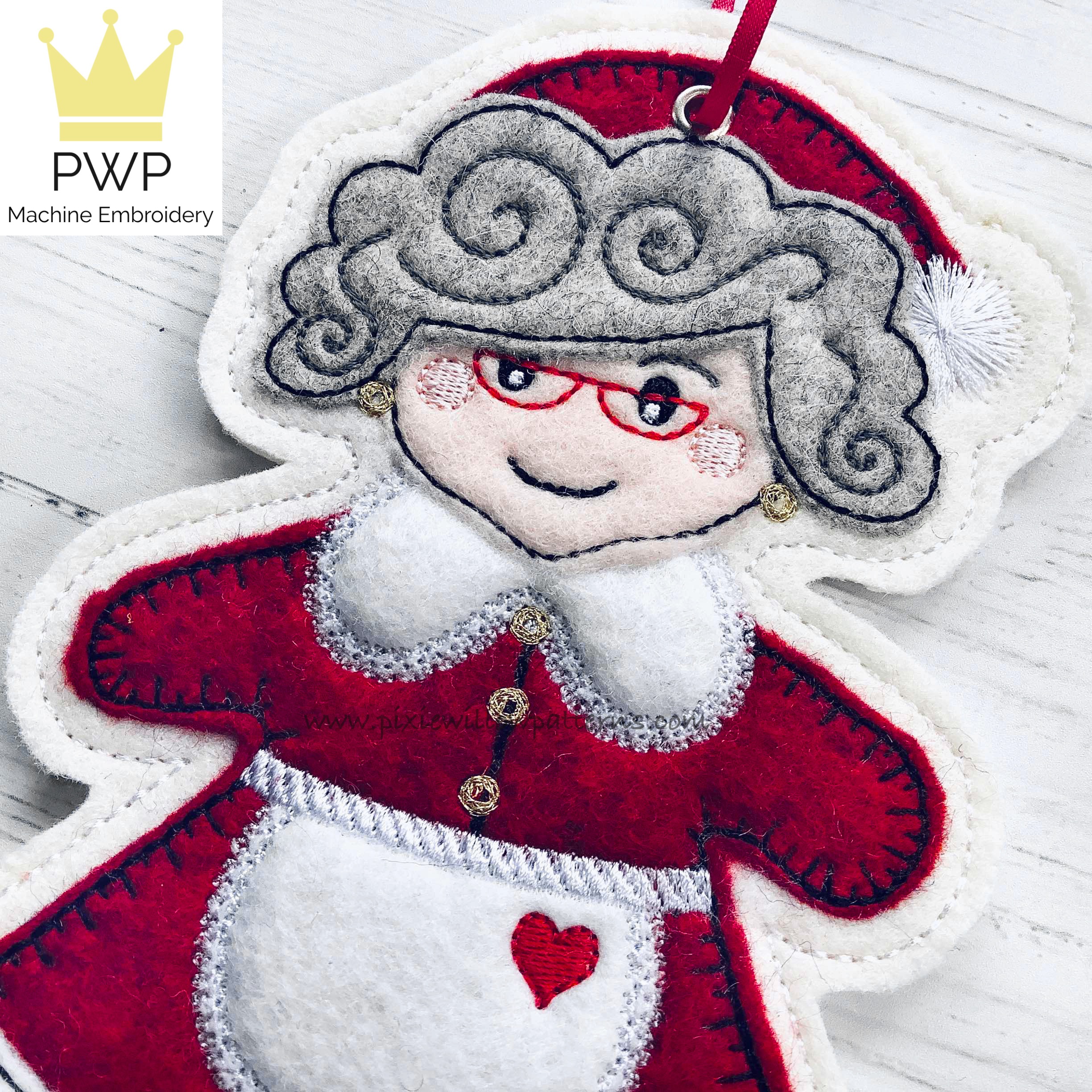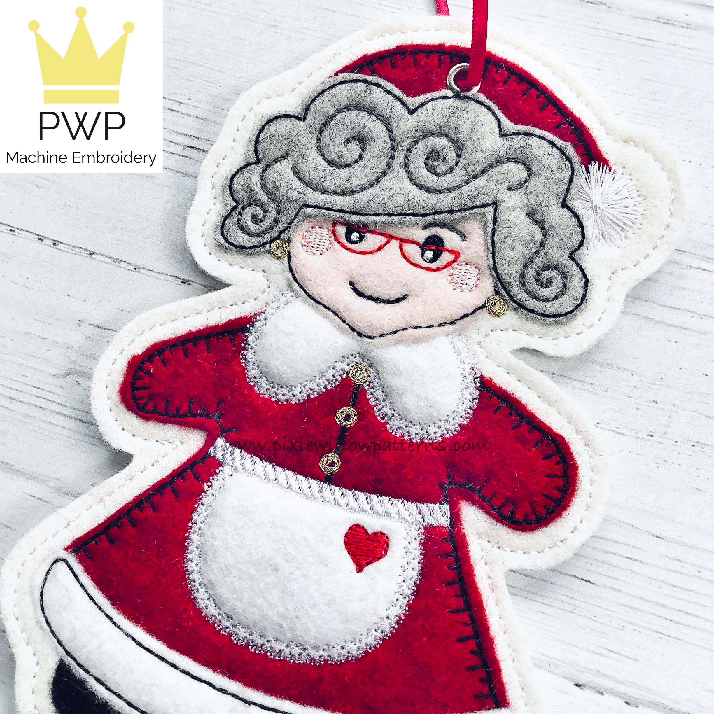 ITH Stuffed Mrs Claus Pattern: Christmas Machine Embroidery Design For 5×7 & 8×11 Hoops.