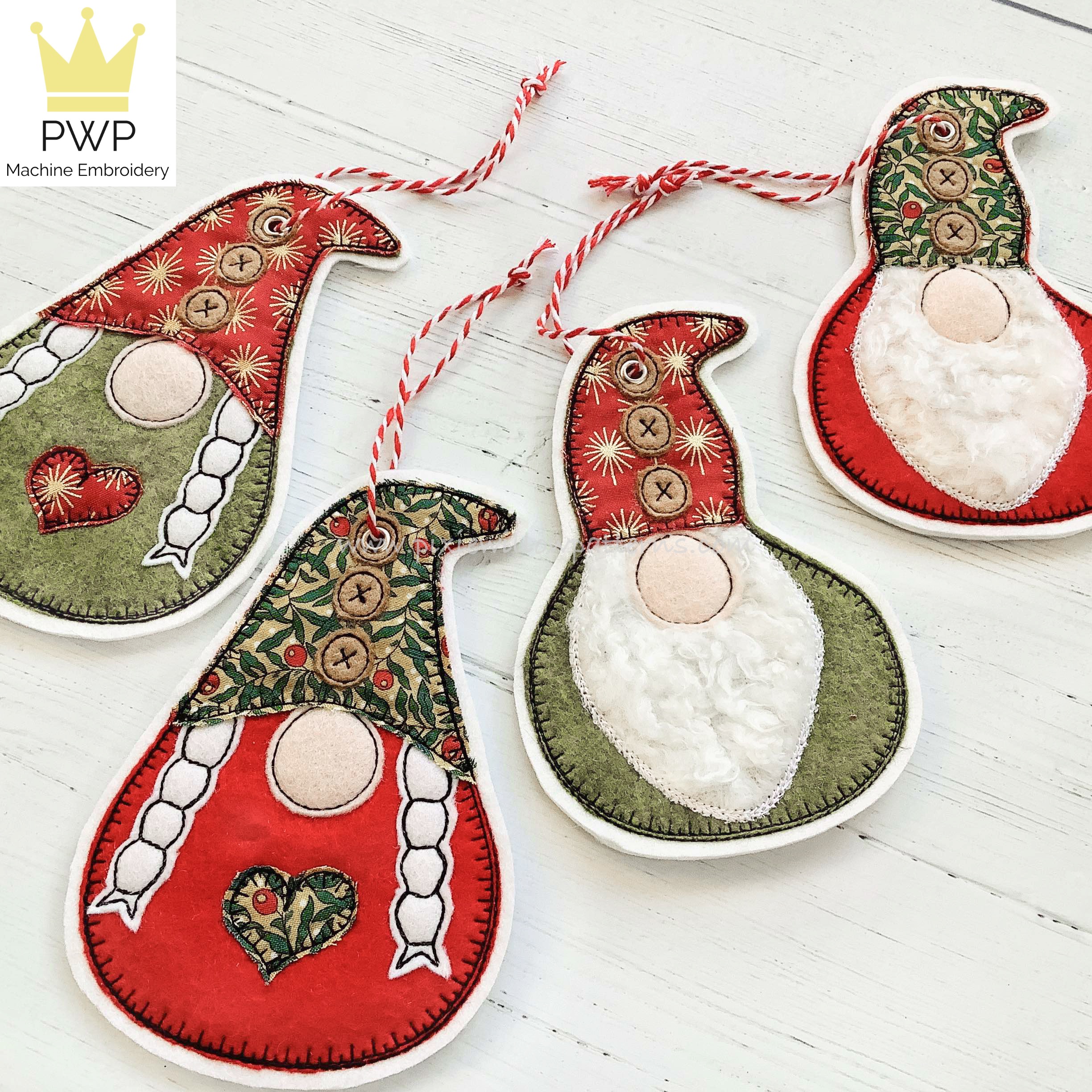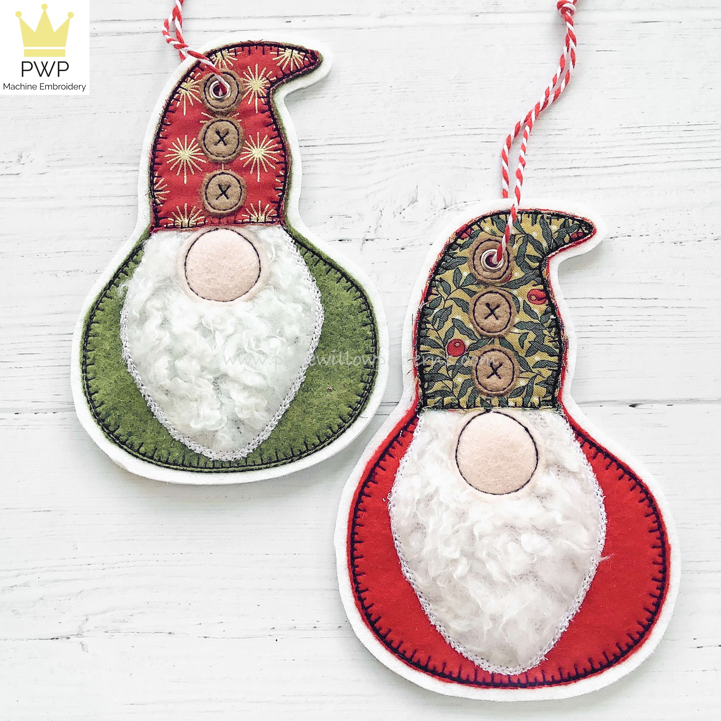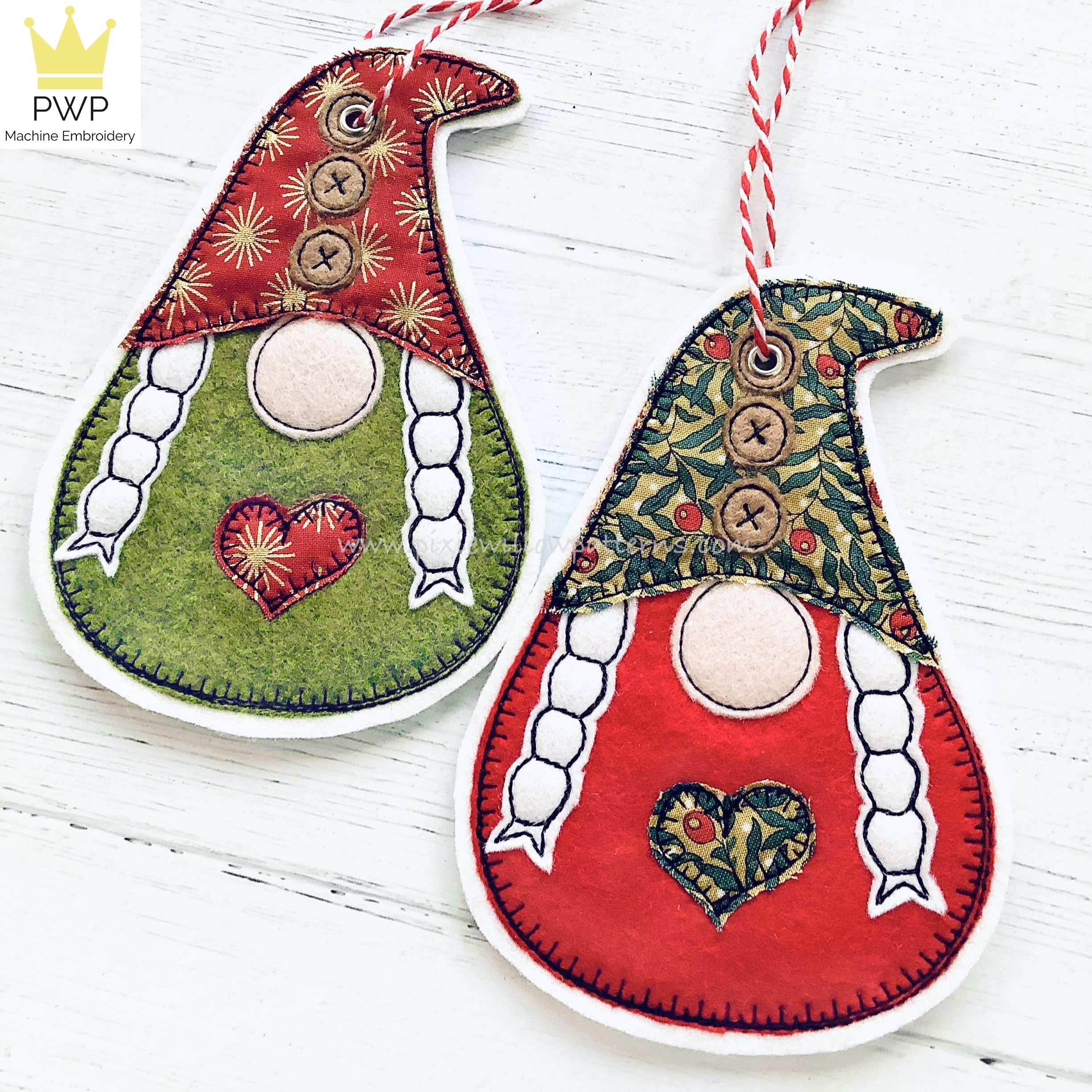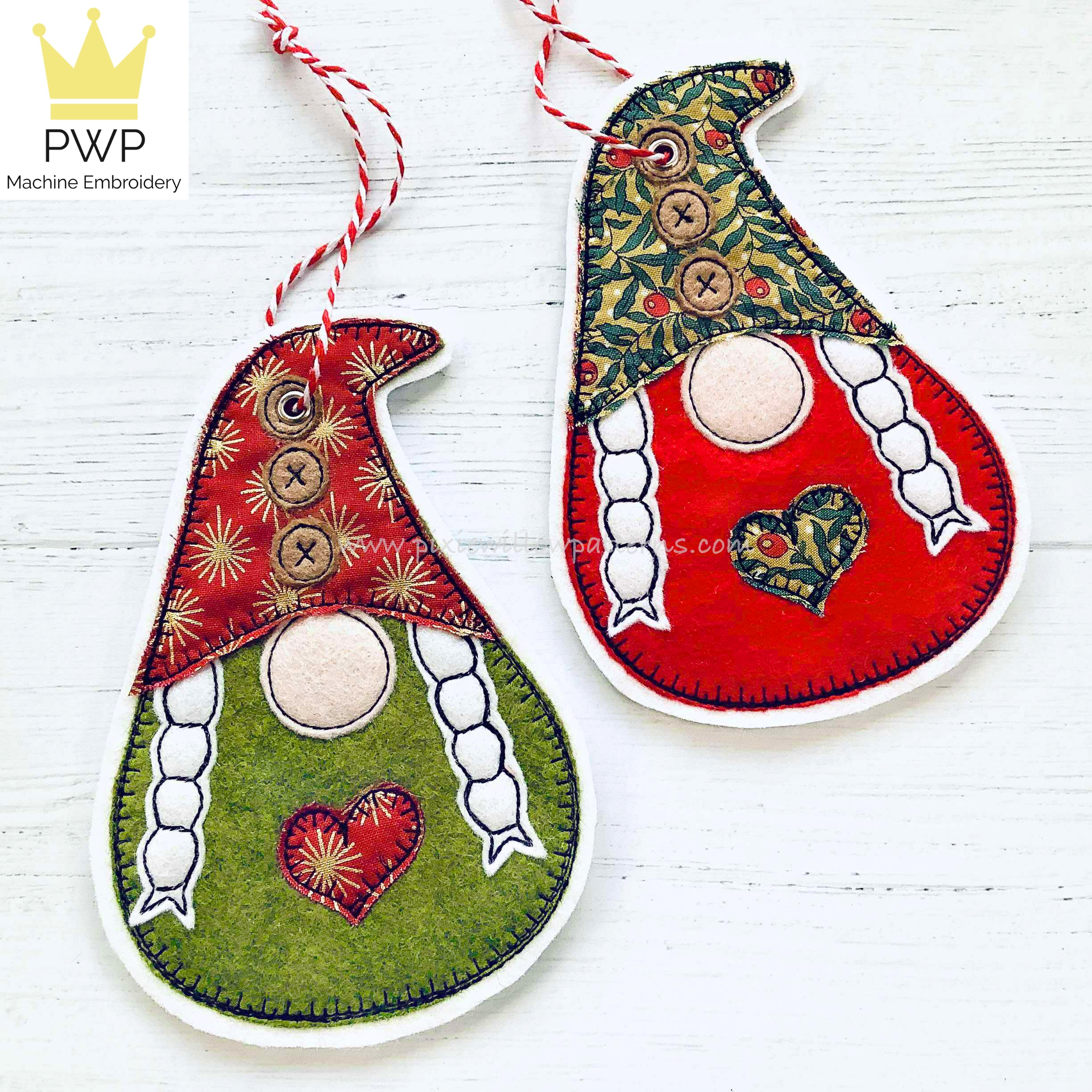 This is the set of both the boy and the girl gnomes bunting. They are slightly different to the single pattern one. They are slightly smaller, without a pocket and have the eyelet as part of the pattern – which helps make them bunting much faster.