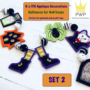 Set 2. 6 x In the hoop Halloween Applique Decoration designs. Six ITH Halloween patterns for 4×4 hoops